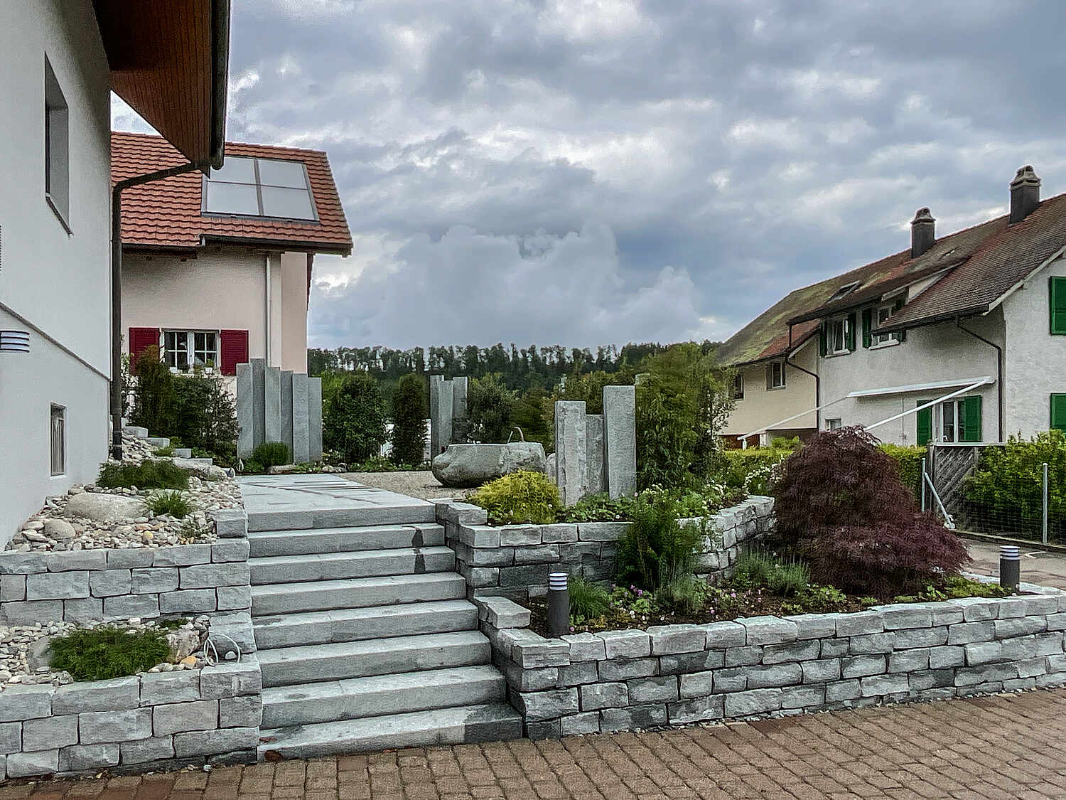 Sicher und harmonisch integriert: Wir bauen Treppenanlagen aus Stein, Beton oder Holz, die Funktionalität und Design perfekt verbinden – abgestimmt auf das Gelände und Ihre Wünsche.